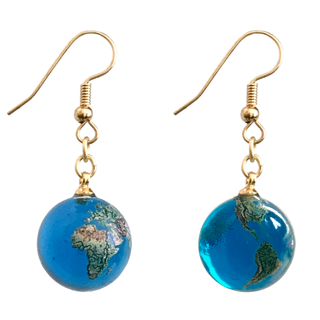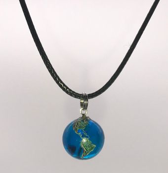 Our new glass earth pendant is the perfect pairing with our popular earrings. Adjustable waxed-cotton cord allows it to be worn as a choker or short pendant. ½” size earth. 18” maximum length pendant. Assembled in the USA.